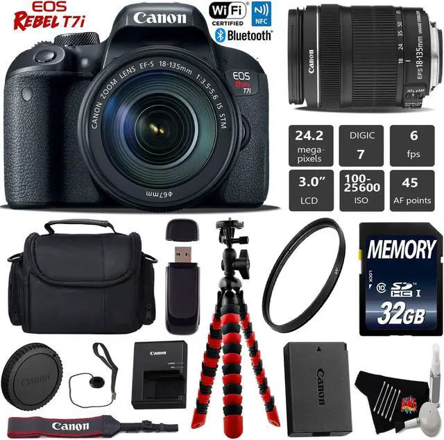 Packing a versatile feature-set in a sleek and portable body, the EOS Rebel T7i DSLR from Canon offers advanced imaging capabilities along with a convenient range of controls and connectivity.