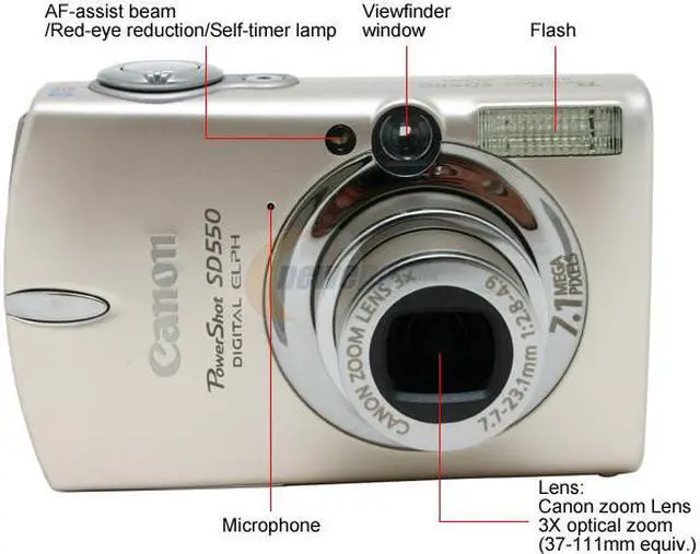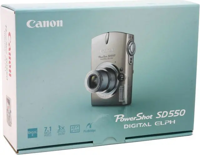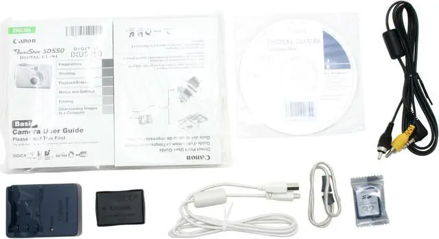 | Package Contents | PowerShot SD550 Body Lithium Battery Pack NB-3L Battery Charger CB-2LU SD Memory Card SDC-32M Wrist Strap WS-700 Digital Camera Solution CD-ROM USB Interface Cable IFC-400PCU Audio/Video Cable AVC-DC300 |