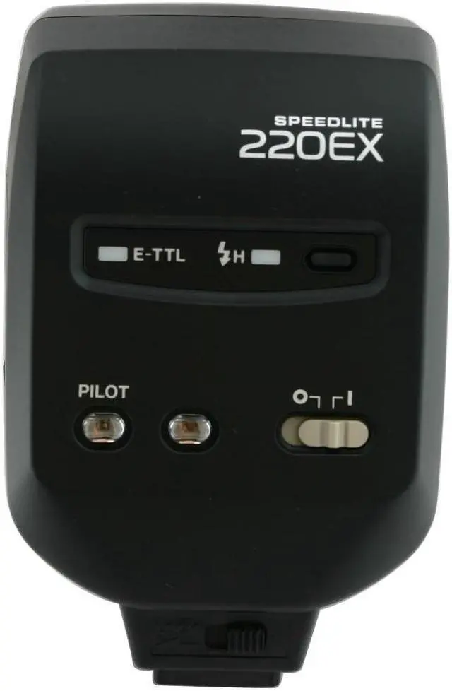 E-TTL Auto FlashThe Canon Speedlite 220EX flash is powered by Canon's advanced E-TTL (Evaluative Through-The-Lens) auto flash technology. When working with compatible Canon cameras, the Speedlite 220EX delivers an automatic pre-flash for the camera to calculate the ambient light level, subject position and to determine the best flash exposure for natural-looking and balanced photos.