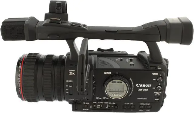 | Features | Genuine Canon 20x HD Video Lens with Professional L-Series Fluorite DIGIC DV ll HD Image Processor The XH G1S's design gives you equally impressive operational performance. The design lets you operate the zoom using the lens barrel ring, the control on the camera's grip, or the control on the camera's handle. When using the zoom ring on the lens, you can control the speed of your zoom by varying the angle of the ring, or by varying the speed at which you rotate the ring. When using the grip control, you can zoom at 16 different speeds; or you can use the control to operate at a single zoom speed which you preset. When using the handle zoom control, you can operate the zoom at a single speed which you preset. You can also select high-speed zoom to increase the zoom speed when using either the grip or handle control. And, because the lens is designed with a zoom ring, you can operate zoom, focus and aperture using a single hand. Starting with the superb Canon Genuine Canon 20x HD lens with Professional L Series Fluorite, the XH G1S adds 3CCDs, each of which is at 1440 x 1080 pixels. It also means you can be sure that your shooting in the field will be the best it can be with Canon's SuperRange Optical Image Stabilization. It corrects for a wide range of camera movement and vibration, and combined with Instant AF (Auto Focus) you'll get ultra-quick, accurate focus. The DIGIC DV II HD image processor finishes the picture with improved color reproduction and noise reduction - for a final result that delivers excellent image quality. |