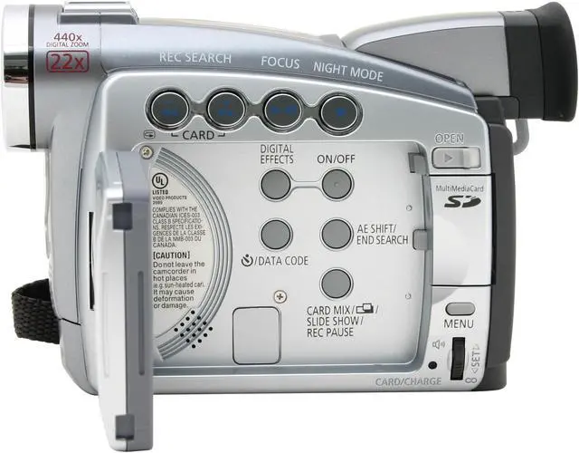 | Package Contents | BP-508 Battery Pack CA-570 Compact Power Adapter SS-900 Shoulder Strap STV-250N Stereo Video Cable WA-30.5 Wide Attachment WL-D82 Wireless Controller SDC-8M SD Memory Card IFC-300PCU USB Cable DIGITAL VIDEO SOLUTION DISK for Windows DIGITAL VIDEO SOLUTION DISK for Macintosh |
