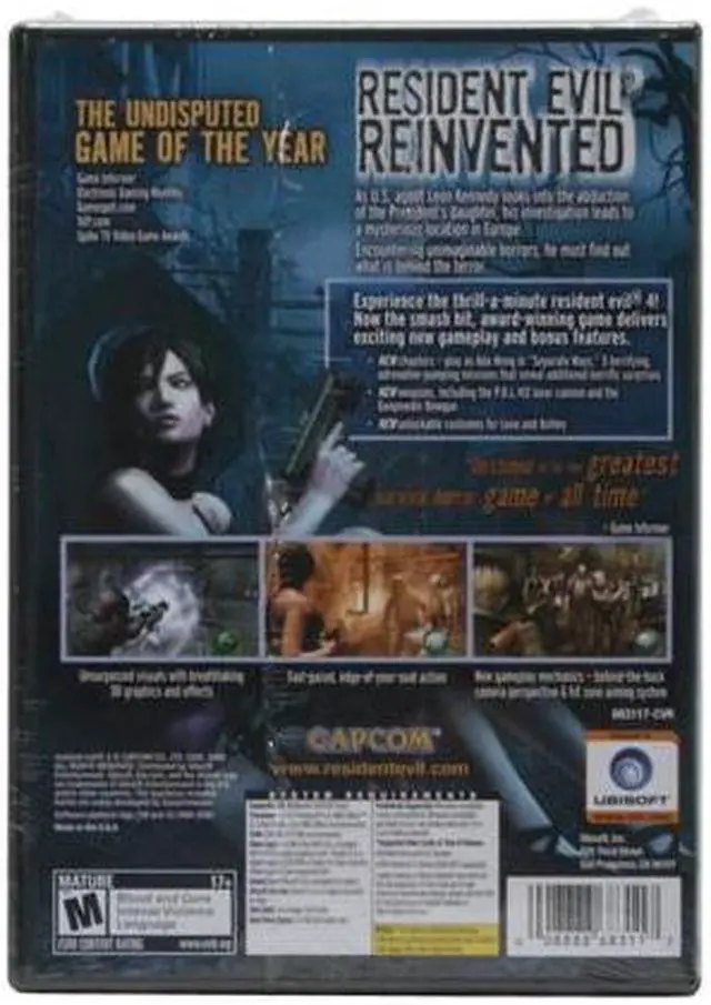 Resident Evil 4 marks a terrifying new chapter in the world renowned Resident Evil series. Players rejoin Leon S. Kennedy, six years after his first mission as a rookie cop from Resident Evil 2. Now a U.S. agent, Leon is on a top-secret mission to investigate the abduction of the President's daughter which leads him to a mysterious European location where unimaginable horrors await. Unsurpassed visuals with breathtaking 3D graphics and effects! Brand new action-oriented gameplay and story. Extraordinary new enemies - zombies are obsolete; replaced by intelligent but evil creatures. Killer weaponry - hand grenades, sniper rifle, rocket launcher, cannons and more. New gameplay mechanics - behind-the-back camera angle perspective & hit zone aiming system. New characters - new playable female character plus a mysterious new friend... or foe!