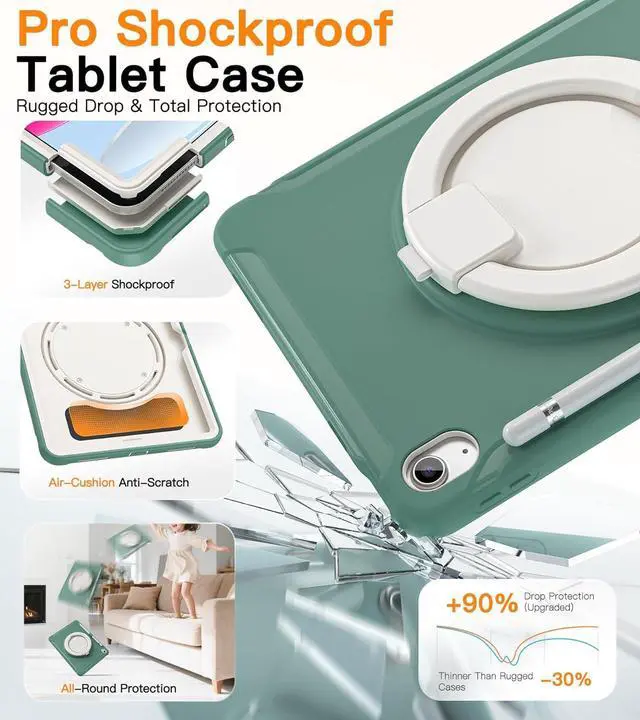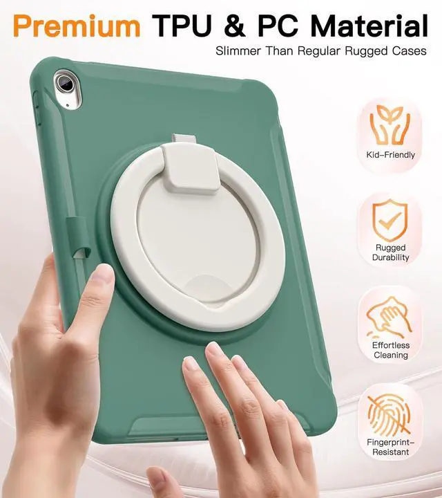 • BATYUE Shockproof Case for iPad 10th Gen 10.9 2022 / 11th Gen (A16) 11 2025 | 360° Multi-Angle Stand (Portrait & Landscape) & Grip Built-in Screen Protector Pencil Holder Jade Green