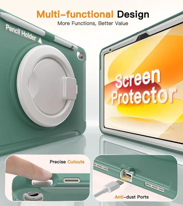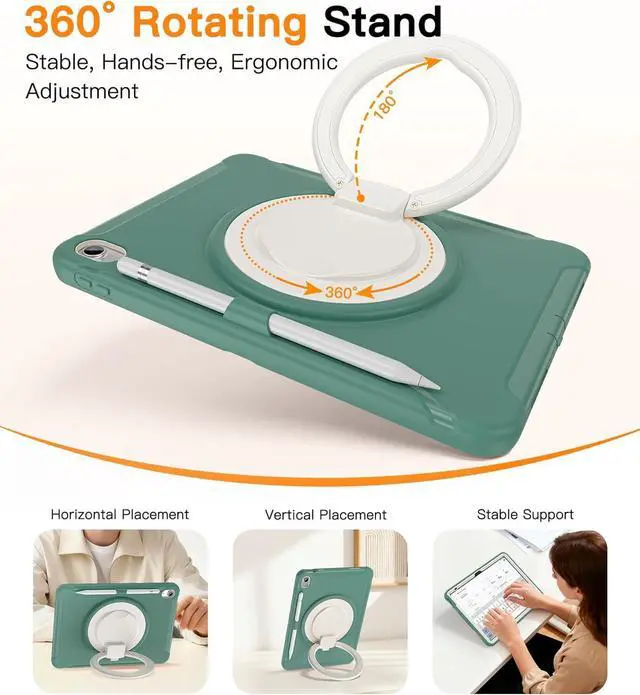 Shockproof Case for iPad 10th Gen 10.9 2022 / 11th Gen (A16) 11 2025 | 360° Multi-Angle Stand (Portrait & Landscape) & Grip Built-in Screen Protector Pencil Holder Jade Green