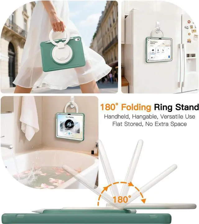 Handle Grip: 360° rotating ring standfree landscape/portrait switch multi-angle sturdy supportideal for designers (drawing/ref) beauty/nail artists (designs/guides) office/retail/food/medical staff (typing/menus-orders/charts/guides) video lovers (viewing/streaming) learners & seniors (studying/reading). Sturdy base resists sliding/falling hands-free use at home/office/store/clinic/outdoor & more. 180° foldable handlehanging loop easy carrying/hanging for on-the-go useValue-Packed
