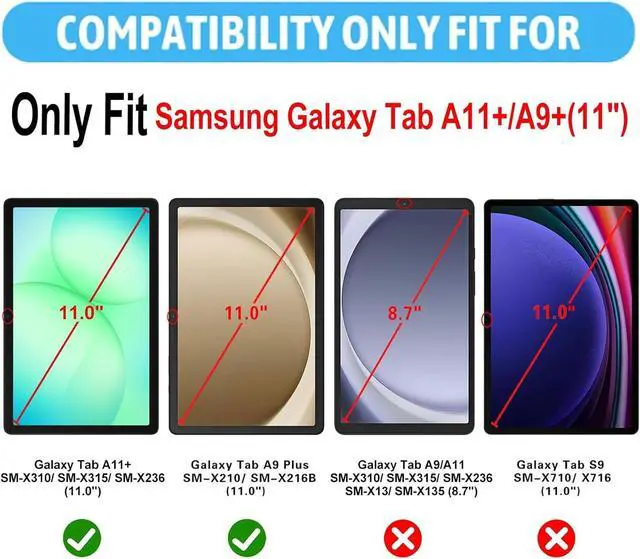 [Compatibility]: Galaxy Tab A11 Plus/A11+ 2025 11 Inch/ Galaxy Tab A9 Plus/A9+ 2023 11 Inch SM-X310/ SM-X315/ SM-X210/ SM-X216B;