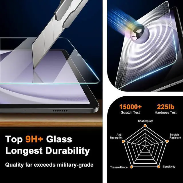 Protect Your Device: Shield your Galaxy Tab A9 Plus 11 inch 2023 from scratches smudges and impacts with our 2 Pack Tempered Glass Screen Protector. Designed exclusively for your device with 9H hardness and 0.3 mm thickness it offers optimal protection while maintaining touch sensitivityHigh