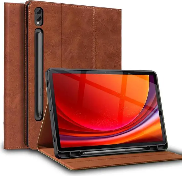 Attention: This leather case supports a pen holder but does not include a pen. [Material]-This protective cover is made of high-quality genuine split leather which has a great touch. Tpu full package soft inner shell all-round protection from front and rear left and right. Prevent tablet from being scratched and worn. It can effectively protect your tablet from shock. [Precise Position]-Full access to all features (cameras speaker ports and buttons). multiple slots able to set up multiple horizontal stand angles. [Complete Functions]-Solid construction support auto sleep/wake feature. [Worry Free After Sale]-If you have any question about this tablets cover please feel free to contact us through the message center we will provide a solution that will please you.