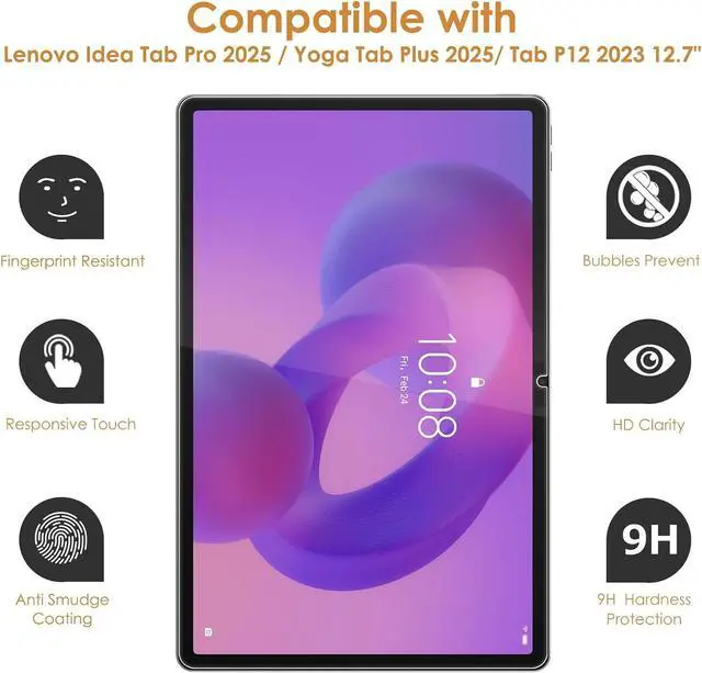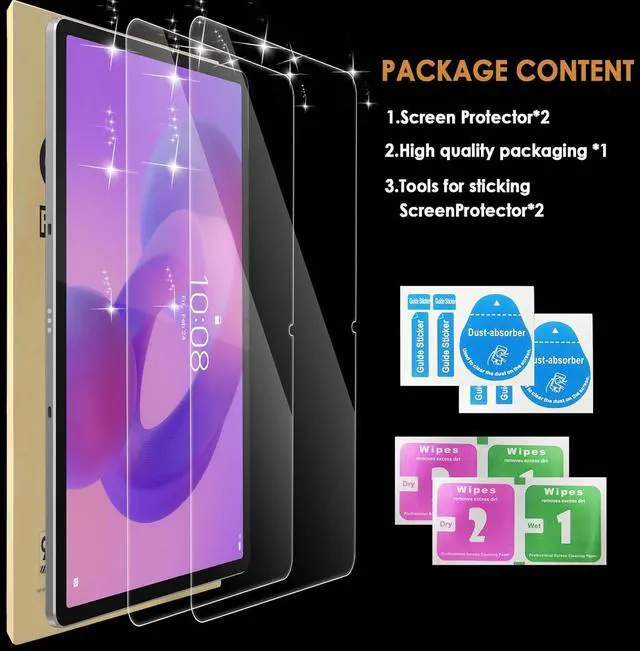 2-Pack Screen Protector Compatible with Tab P12 12.7 2023 / Yoga Tab Plus 2025 / Idea Tab Pro 12.7 2025Tempered glass film provides a safe guard to your liquid crystal screen with protective premium paper package including two sets of cleaning kits intimate care with two-pack.