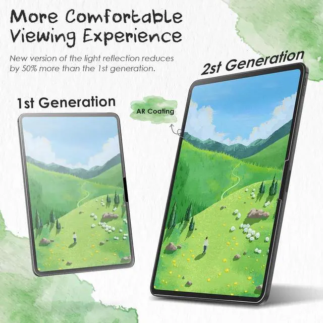 Fit models: A2902 A2903 A2904 A3266 A3267 A3270. Please check back bottom of your device to find the model numberEasy InstallationThe ipad air 11 inch screen protector has self-contained application tray no need any experience can be easily realized without bubbles quick installation is not easy to fall off comes with detailed installation step-by-step instructions and specific operation videoPaper-feel Tactility & Military-Grade Impact ProtectionThis ipad air screen protector 11 inch uses innovative surface treatment technology to accurately restore the natural texture and writing resistance of paper creating a paper-like experience for digital writing. 9H hardness military-grade tempered glass provides 360° full-dimensional protection against scratches chips and accidental drops. It also reduces stylus tip wear and prolongs the life of the accessoryAnti Glare & Anti FingerprintThis screen protector ipad air 11 inch can effectively inhibit the glare of natural and artificial light giving you a great reading and working experience even in the sunlight it has an advanced oleophobic coating that effectively prevents fingerprints and smudges from stainingHD & High Sensitivity100% transparency invisible ultra HD clear tempered glassrestore the true color of the screen enjoy the original clarity of the iPad. 0.33 mm ultra-thin thickness so that each touch to maintain a high degree of sensitivity will not appear lag delay phenomenon to ensure the original iPad use experience