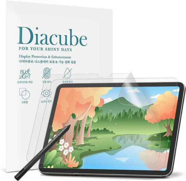 Additionally the Blue Light Filter promotes better sleep. EASY INSTALLATION & BUBBLE FREE* Please watch our detailed instructions video before installation. DIACUBEs unique 3-step half-cut installation method is designed to be easy for anyone to install minimizing the chance of bubbles. If any bubbles do appear they will naturally disappear within 24 hours so theres no need to press them out forcefully. Enjoy a quick hassle-free installation with a flawless bubble-free finish! PACKAGE CONTENTS 2 x Paperfeel Screen Protectors 1 x Squeegee Card 2 x Wet Wipes 1 x Microfiber-Clothes 3 x Dust Removal Stickers 2 x Positioning Stickers.