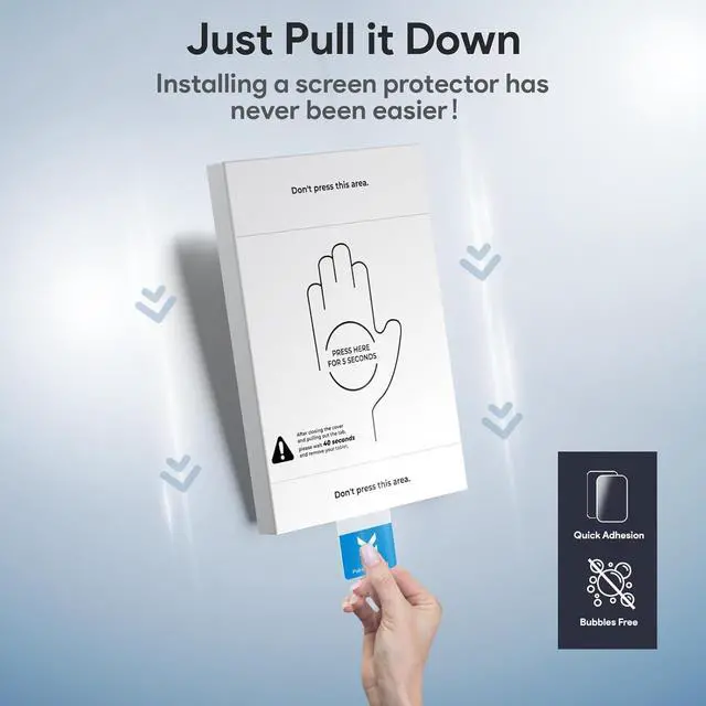 Application: Featuring a custom installation frame Just pull the tab off and let the iPad A16 screen protector adhere itself. The specially designed adhesive layer automatically expels air bubbles. The process is quick and straightforward ensuring a hassle-free