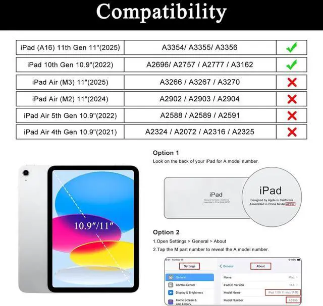 Inch 2025(Model number: A3354 A3355 A3356) & iPad 10th Generation 10.9