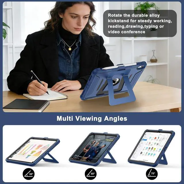 Inch 2022(Model number: A2696 A2757 A2777 A3162). NOT compatible with any other modelsRugged Heavy Duty Full Protection Multi-layered hard PC back and flexible TPU bumper provide heavy duty full protection against drops bumps and impacts also easy to install90°Typing + 90° Viewing Rotating Stand Adjustable 90° Typing stand for convenient taking notes or drawing. 90° vertical & horizontal stands for comfortable reading or enjoying moviesBuilt-in Screen ProtectorProtect your i Pad 11 /10 Gen screen avoid from scratches without compromising sensitivity. Pencil Holder grab your pencil avoid loss and also easily to carryPrecise Cutouts Precise cutouts and design allow easy access to all ports sensors speakers cameras without removing the case. Available in a variety of bright and fun colors