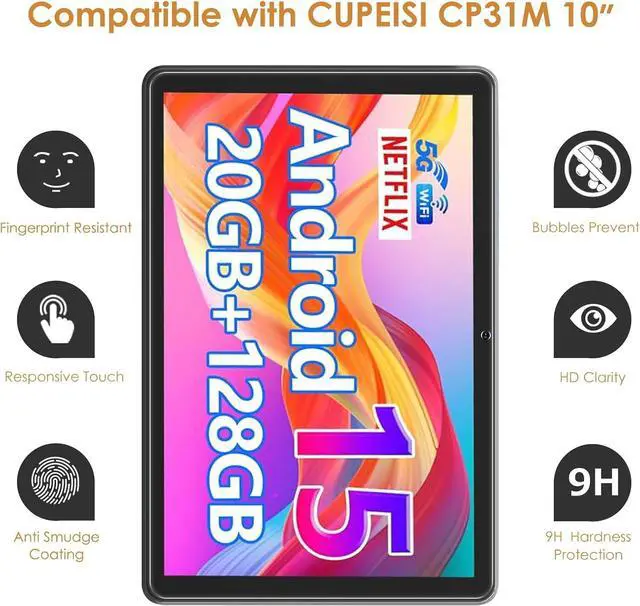 Compatible Model - Only Compatible with CUPEISI CP31M Tablet 10 Inch NOT for any other models please comfirm your tablet model before order! All-fit Cutouts & High ResponseRigorous calibration technology ensures all-fit cutouts including light sensor cutouts 3D touch cutouts and so on. Full coverage flow fit layer and ion compression molding technology ensures no mistake in screen control including quick response and 100% accurate touch on the screen. High Transparency Tempered GlassThe 2.5D arc edge processing makes the visual effect clearer and the stereoscopic effect stronger and the edge of the glass will not scrape your hands.