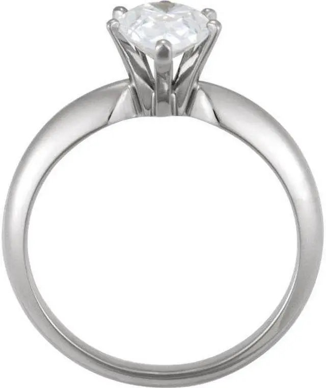 This ring is a winner! She will love this Pear shaped diamond, set in 14K White Gold. The size of the ring is 7, although it can be resized for free from size 4 to 9. To resize the ring, please contact us at the time of purchase, otherwise we will send the ring in its current size. The carat weight of the diamond is 0.59. The color of the diamond is E and the clarity is SI1. The measurements of the diamond are: 6.81 x 4.74. This stone is certified by IGL, cert
