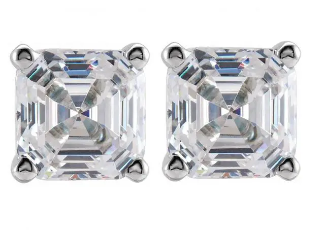 This pair of natural earth mined Asscher shaped Diamond stud earrings is a must-have gift. The pair of Diamonds has a combined carat weight of 0.98. The color of the Diamonds in these studs are G and the clarity is VS1. The measurements of the pair are: 4.62 x 4.52.