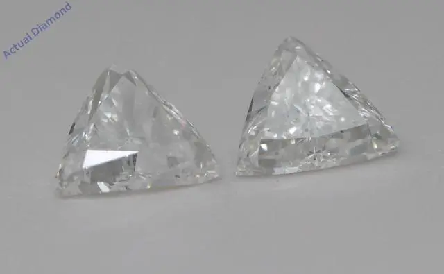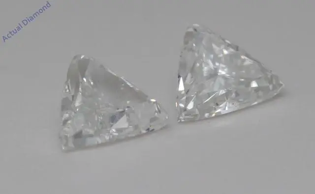 This pair of natural earth mined Triangle shaped Diamond stud earrings is a must-have gift. The pair of Diamonds has a combined carat weight of 1.8. The color of the Diamonds in these studs are G and the clarity is SI1. The measurements of the pair are: 6.83 x 6.42.