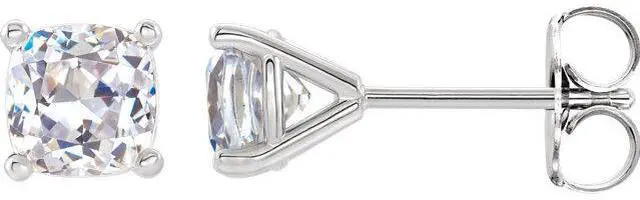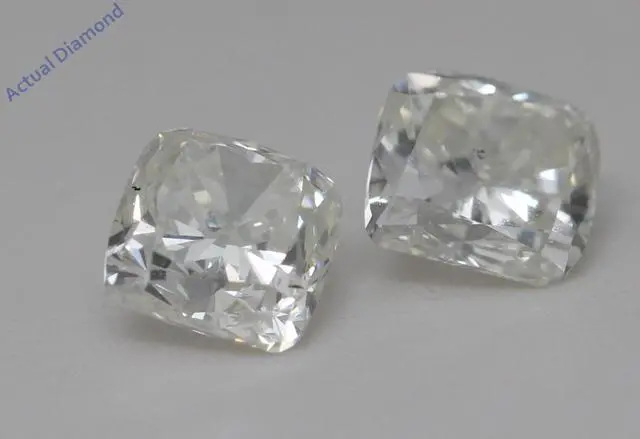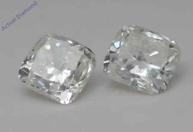 This pair of natural earth mined Cushion shaped Diamond stud earrings is a must-have gift. The pair of Diamonds has a combined carat weight of 1.83. The color of the Diamonds in these studs are J-k and the clarity is SI1. The measurements of the pair are: 5.26 x 5.50.