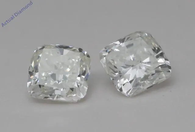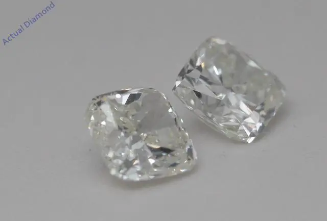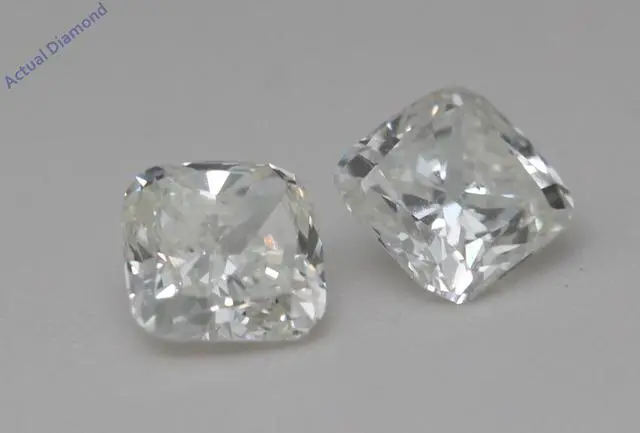 This pair of natural earth mined Cushion shaped Diamond stud earrings is a must-have gift. The pair of Diamonds has a combined carat weight of 2.07. The color of the Diamonds in these studs are H-i and the clarity is SI1. The measurements of the pair are: 5.59 x 5.62.