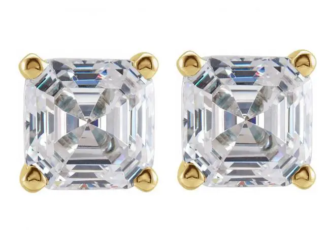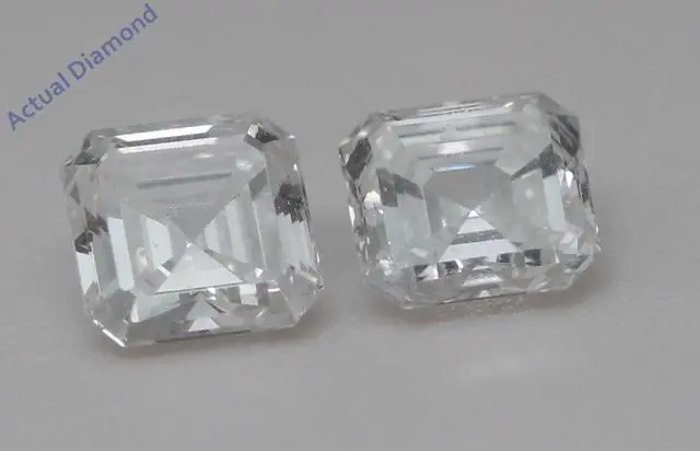 This pair of natural earth mined Asscher shaped Diamond stud earrings is a must-have gift. The pair of Diamonds has a combined carat weight of 0.98. The color of the Diamonds in these studs are G and the clarity is VS1. The measurements of the pair are: 4.62 x 4.52.