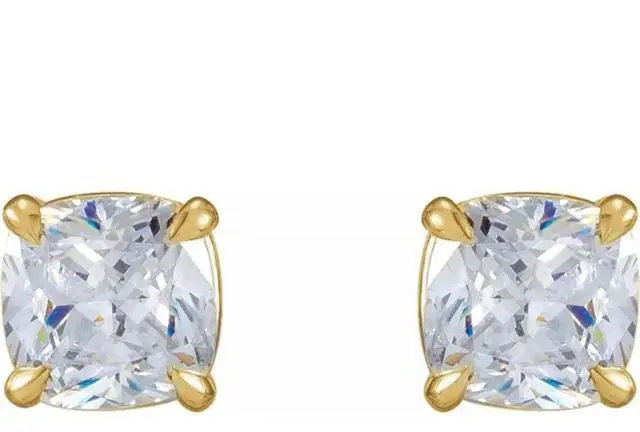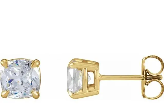 This pair of natural earth mined Cushion shaped Diamond stud earrings is a must-have gift. The pair of Diamonds has a combined carat weight of 1.67. The color of the Diamonds in these studs are F and the clarity is VS1. The measurements of the pair are: 6.37 x 5.47.