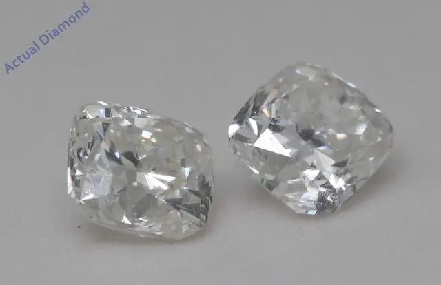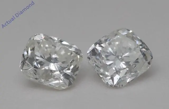 This pair of natural earth mined Cushion shaped Diamond stud earrings is a must-have gift. The pair of Diamonds has a combined carat weight of 1.44. The color of the Diamonds in these studs are H-i and the clarity is SI. The measurements of the pair are: 4.77 x 5.08.