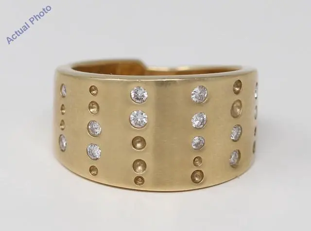 This ring is a winner! You'll love these Round shaped diamonds, set in 18k Yellow Gold. The size of the ring is 7.5 although it can be resized for free from size 7 to 8. To resize the ring, please contact us at the time of purchase, otherwise we will send the ring in its current size. The total carat weight of the diamonds in this ring is 0.13. The color of the stones in the center of the ring is H and the clarity is SI.