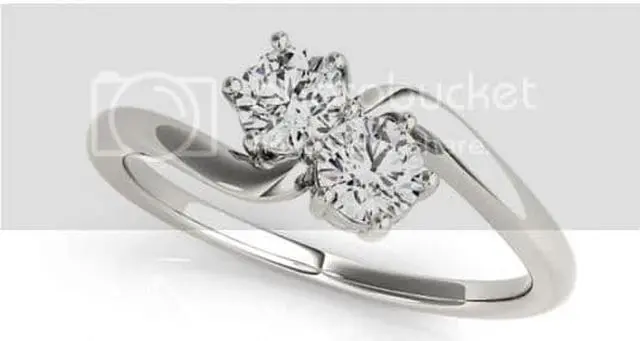 This Two Stone ring is a winner! You'll love these Round shaped diamonds, set in 14K White Gold. The size of the ring is 7, although it can be resized for free from size 4 to 9. To resize the ring, please contact us at the time of purchase, otherwise we will send the ring in its current size. The total carat weight of the diamonds in this ring equals 0.62. The color of the diamonds is D and the clarity is VVS2. The measurements of the pair are: 4.16X 2.65, 4.52X 2.66.