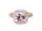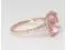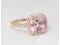 The weight of the metal in this ring is 3.61 grams (approx). In the center of this ring there is a beautiful earth mined morganite. This cushion shaped morganite is 2.7 carats in weight, is pink in color, and has a clarity grade of VS2. This morganite has undergone the following treatment to enhace the color or clarity: heat treated. This ring has 34 earth mined diamonds set to accent the center of this beautiful piece. These round shaped diamonds are 0.34 carats in weight, has a color grade of H, and have a clarity grade of VS2. These diamonds are not treated. All of our fine diamond and gemstone jewelry, including our loose diamonds and gemstones, is elegantly packaged in a classic jewelry box and comes with a 30-day return policy.