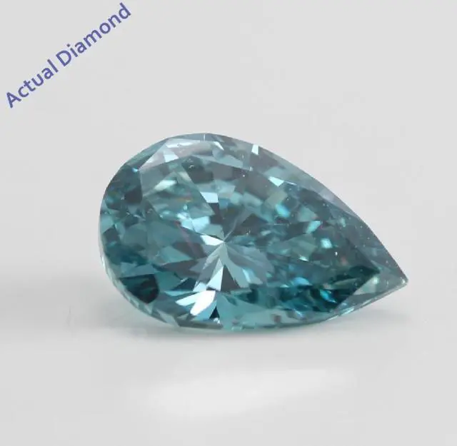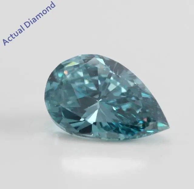 This ring is a winner! She will love this Pear shaped Diamond, set in 14k White Gold. The size of the ring is 6, although it can be resized for free from size 4 to 9. We will contact you within 24 hours of purchase by email and ask for your ring size. The carat weight of the diamond is 1.02. The color of the diamond is Blue (Color Irradiated) and the clarity is SI1 (Clarity Enhanced). The measurements of the diamond are: 8.46X 5.47X 3.43. This diamond has undergone the following clarity and color treatments: Clarity Enhanced, Irradiated. All our diamond jewelry and loose diamonds arrive in a classic jewelry box and come with a 30-day return policy.