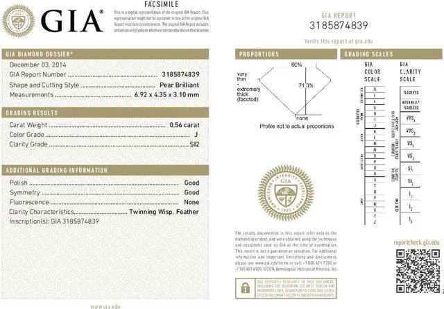 #: 3185874839. The polish is Good with Good symmetry. The depth is 71.3 % with a table width of 60%.
