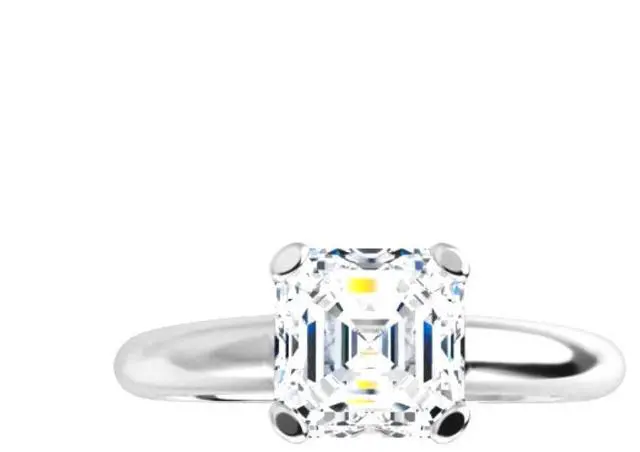 This ring is a winner! She will love this natural earth mined Asscher shaped Diamond, set in 14k White Gold. The size of the ring is 6, although it can be resized for free from size 4 to 9. To resize the ring, please contact us at the time of purchase, otherwise we will send the ring in its current size. The carat weight of the diamond is 1.03. The color of the H and the clarity is VS1. The measurements of the 5.45 x 5.41 x 3.83. This stone is certified by GIA, cert