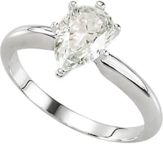 This ring is a winner! She will love this Pear shaped Diamond, set in 14K White Gold. The size of the ring is 7, although it can be resized for free from size 4 to 9. To resize the ring, please contact us at the time of purchase, otherwise we will send the ring in its current size. The carat weight of the diamond is 0.74. The color of the diamond is K and the clarity is SI2. The measurements of the diamond are: 7.51X 4.94.