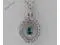 This Pendant is a winner! She will love this Radiant shaped diamond, with 0 shaped side stones, set in 18k White Gold. This diamond pendant comes with a 16 inch chain (upon request we can offer it in 18'' or 20". We will contact you within 24 hours of your purchase to get your preferred chain length). The total carat weight of the Diamonds in this pendant is 0.34. The color of the center stone is Blue (Irradiated) and the clarity is SI2. The color of the side stones is G and the clarity is Si1.