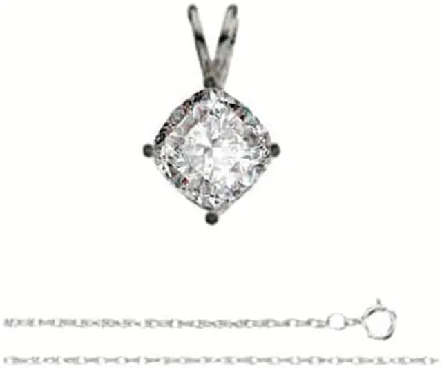 This Princess shaped diamond pendant is set in 14K White Gold and comes with a 16 inch chain (upon request we can offer it in 18'' or 20'', all you need to do is email us or call us). The carat weight of the Diamond is 0.66. The color of the diamond is D and the clarity is SI1 (Laser Drilled). The measurements of the diamond are: 5.1X 4.88X 3.32. This stone is certified by GIA, cert
