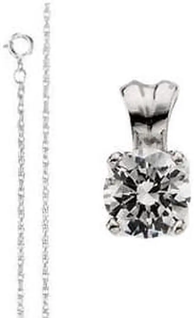 This Round shaped diamond pendant is set in 14K White Gold and comes with a 16 inch chain (upon request we can offer it in 18'' or 20'', all you need to do is email us or call us). The carat weight of the Diamond is 1.31. The color of the diamond is K and the clarity is SI1. The measurements of the diamond are: 6.7 x 4.4. All our diamond jewelry and loose diamonds arrive in a classic jewelry box and come with a 30-day return policy.