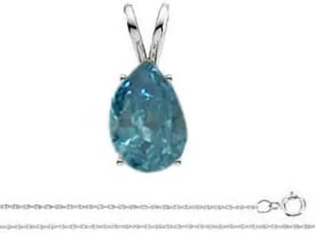 This Pear shaped diamond pendant is set in 14k White Gold and comes with a 16 inch chain (upon request we can offer it in 18'' or 20'', all you need to do is email us or call us). The carat weight of the Diamond is 1.02. The color of the diamond is Blue (Color Irradiated) and the clarity is SI1 (Clarity Enhanced). The measurements of the diamond are: 8.46X 5.47X 3.43. This diamond has undergone the following clarity and color treatments: Clarity Enhanced, Irradiated. All our diamond jewelry and loose diamonds arrive in a classic jewelry box and come with a 30-day return policy.