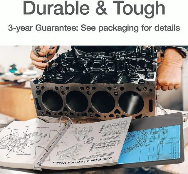 With a capacity of up to 1,300 sheets of 8.5 x 11 inch paper, the Cardinal XtraLife ClearVue binder with 6-inch rings is designed to hold large reports, guides and manuals. It comes with two interior horizontal pockets that hold unpunched pages, marketing materials, meeting agendas and other must-have items, and its oversize panels also cover and protect tabbed dividers and other binder accessories.