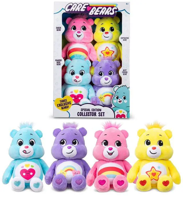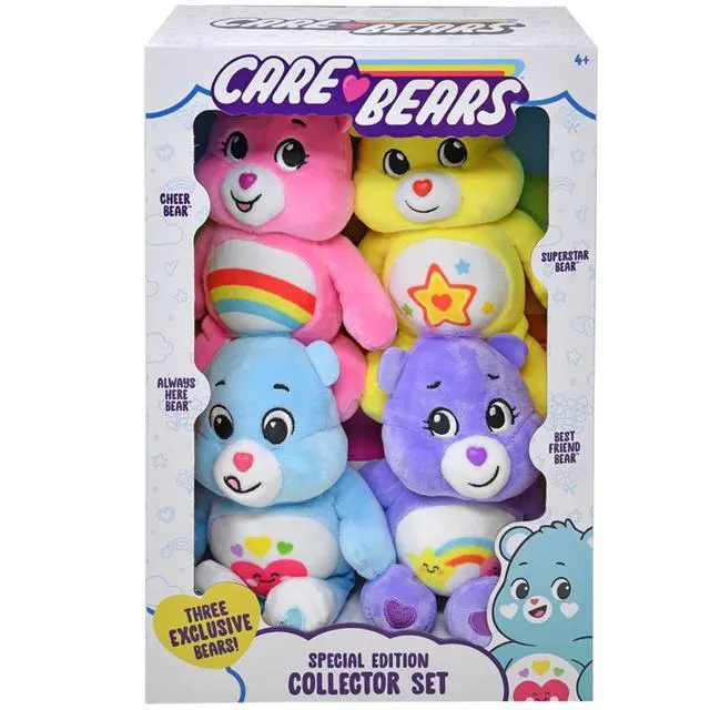 This Care Bears Treasure Box set includes 4 plush characters in one collectible package. Each plush features soft materials and signature Care Bears styling. The set offers a fun way to collect and display multiple characters together. Designed for both play and collection enjoyment. Ideal for gifting or expanding a Care Bears plush lineup.