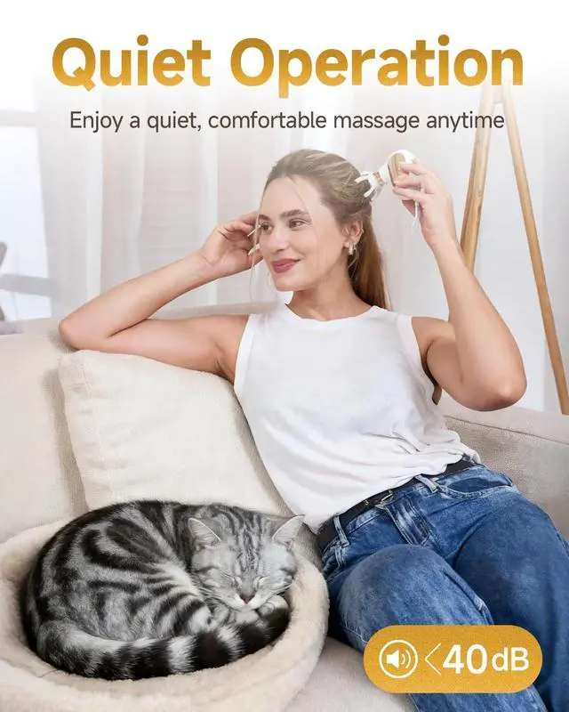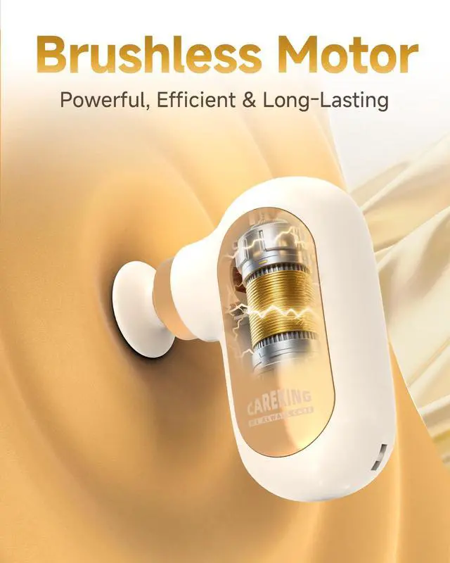 Deep Tissue Muscle Massager with 2900RPM- Experience powerful deep tissue relief with this muscle massage gun. Its high-torque brushless motor reaches up to 2900 RPM, delivering 6mm amplitude percussion with 19 lbs of force. Operating under 40dB, it provides quiet yet powerful muscle massage. This handheld massager eases soreness and stiffness, perfect for portable post-workout recovery or daily use