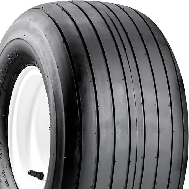The Carlisle Straight Rib is an all season tire manufactured for lawn mowers and garden equipment. This turf tire offers a gentle but firm grip in dry, wet and winter weather without damaging the grass surface. The ribbed pattern enhances the tread life and the tire's usability by evenly distributing the driving pressure along the tread area. The Straight Rib increases the controllability as the steering responsiveness and driving stability are enhanced with the better road gripping ability.