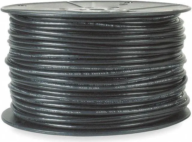 Coaxial Cable, Cable Length 1, 000 ft, Coaxial Cable Type RG-58A/U, Conductor Gauge 20 AWG, Jacket Material PVC, Maximum Impedance 50 ohm, Shielded Shielded, Shielding Material 95 Percent Tinned Copper Braid, Fire Rating Commercial, Insulation Material FPE, Jacket Color Black, Maximum Capacitance 26 pF/ft, Outside Diameter 0.2 in, Standards ASTM B3, ASTM B869, ETL Listed, UL Listed, Maximum Frequency 1, 000 MHz, NEC Article and Type 800 CM, 820 CM. This item has been restricted from sale in the following state (s): []