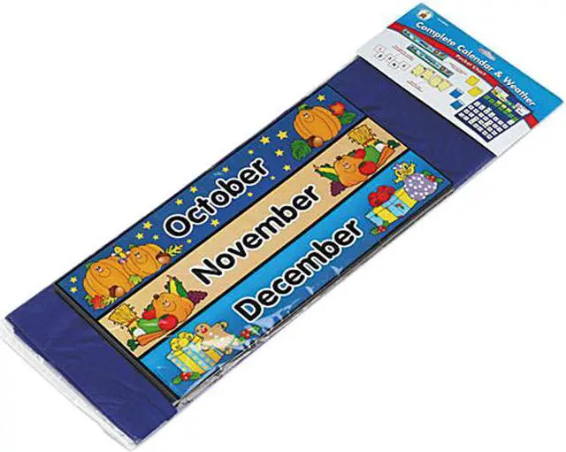 26 inches x 37.25 inches (2) 26 inch x 2 inch clear pockets 49 clear pockets, approx. 3.75 inches x 2 inches 208 total cards, which include: monthly, holiday, question of the day, season, and weather Resource guide