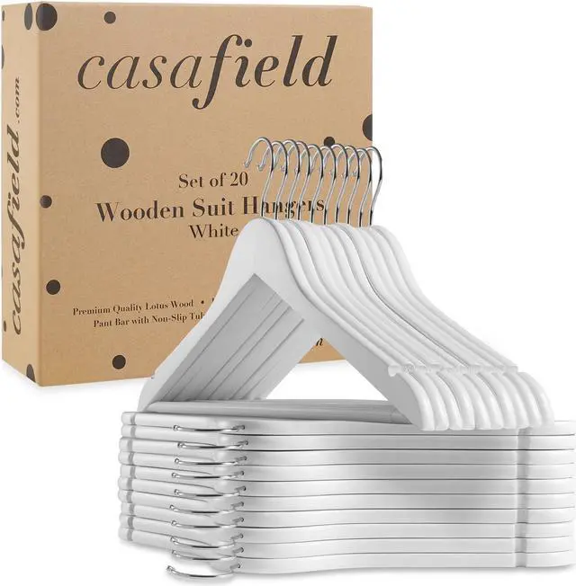 The strong, 360-degree swivel hook easily allows you to hang any garment in either direction. Our shiny chrome hooks also resist rusting for lasting use. Casafield wooden suit hangers are great for hanging heavy and bulky winter coats, men's or women's suits, and much more.