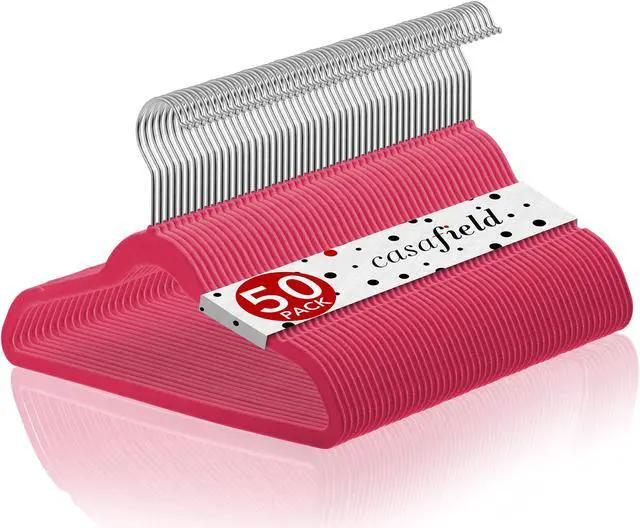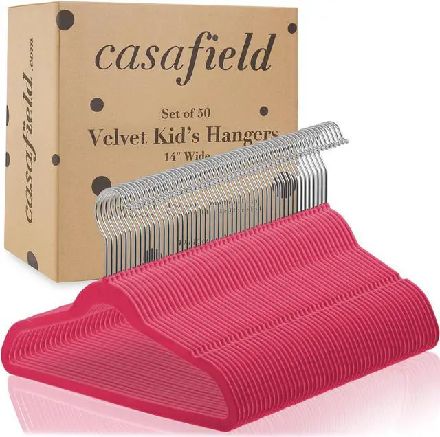 Our textured clothes hangers feature precisely cut notches and contoured shoulders gripping items like tank tops and strappy dresses with ease. These velvet kid's hangers from Casafield feature a horizontal cross-bar that securely grips jeans, pants, trousers, skirts, and sweaters while preventing creases and clothing piles on the closet floor. The double-duty design is perfect for hanging both pants and tops together allowing you and your child to organize all their outfits making them ready to wear.