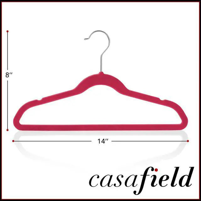 The strong, 360-degree swivel hooks easily allow you to easily hang any garment in either direction. Our shiny chrome hooks also resist rusting for lasting use. Casafield velvet kid's hangers are designed to hold up to 5 lbs., making them great for hanging children's coats, outerwear, and much more.