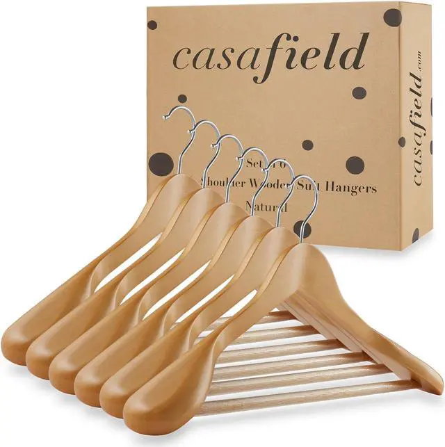 The strong, 360-degree swivel hook easily allows you to hang any garment in either direction. Our shiny chrome hooks also resist rusting for lasting use. Casafield wooden suit hangers are great for hanging heavy and bulky winter coats, men's or women's suits, and much more.