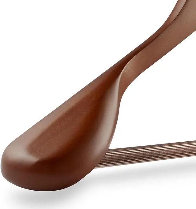 Our wooden clothes hangers feature wide contoured shoulders for hanging suit jackets, coats, sweaters and more. These wide shoulder suit hangers from Casafield feature a horizontal cross-bar that grips pants, trousers, and skirts while preventing creases and clothing piles on the closet floor. The double-duty design is perfect for hanging both suit coats and pants allowing you to organize all your outfits.