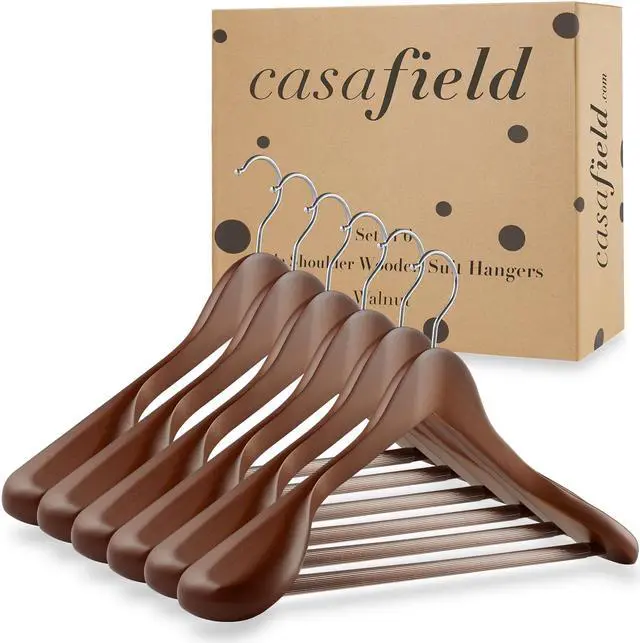 The strong, 360-degree swivel hook easily allows you to hang any garment in either direction. Our shiny chrome hooks also resist rusting for lasting use. Casafield wooden suit hangers are great for hanging heavy and bulky winter coats, men's or women's suits, and much more.